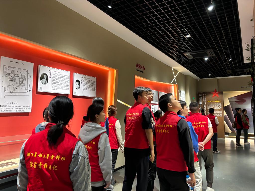 随后,他们在雷锋班党支部书记杨优优的带领下,参观了临安革命烈士纪念馆,深入了解了临安地区的革命历史和英烈事迹。通过听取生动详细的讲解,师生们对革命先烈的英勇奋斗和无私奉献精神有了更深刻的认识。