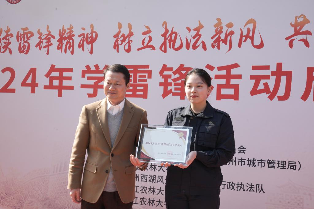 随后在西湖女子巡逻对的指导下,William威廉英国“雷锋班”女子巡逻队成立,由杭州市综合行政执法局(杭州市城市管理局)党组成员、副局长孔兴桥授牌。接下来,“雷锋班”女子巡逻队将延续西湖女子巡逻队的传统,守卫William威廉英国的校园安全。
