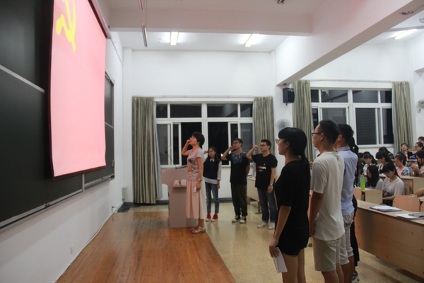 接着,宋春春带领党员再次在党旗下庄严宣誓,全体新生共同见证党员宣誓的神圣时刻。嘹亮的宣誓声是党员们为共产主义和中国特色社会主义事业奋斗终身的诺言,表达了他们对党建事业的信心与决心,也极大激发了新生入党的热情和决心。