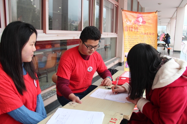 本次活动主要以宣扬雷锋精神及招纳新成员为主,这也是雷锋班首次面向全校纳新。活动现场放置的宣传栏展现了雷锋班成立至今所开展的各项活动,无一不是用实际行动充分诠释了雷锋精神的深刻内涵。同时,雷锋班成员身穿红色雷锋服,为过往的同学详细介绍雷锋班的相关事宜,吸引越来越多的同学填写报名表参加雷锋班志愿活动,为传递爱心献出自己的一份力量。