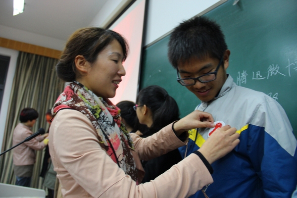 会上,梁卫玲为此次主题班会做了重要讲话。她首先从“为什么成立雷锋班”、“雷锋班活动跟我之间的关系”、“怎样经营建设好雷锋班”三个方面谈了对雷锋班的期望。她指出,在物质生活富裕的年代里,雷锋精神是社会主义核心价值观的重要组成部分,学雷锋活动常态化不仅是社会的需求也是个人成才成才的要求。她倡议大家,将雷锋精神像一粒种子一样在心中生根发芽,践行学习雷锋精神作为一种习惯,融入生活的点点滴滴,努力传承雷锋精神,真诚服务他人,提高自身素养。并为新加入的36名成员佩戴“雷锋班”班徽。