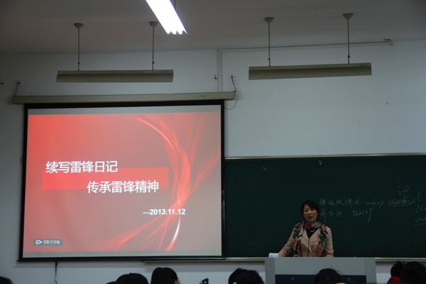 班主任宋春春追根溯源,从革命、传统、新时代等角度深入剖析了雷锋精神的具体内涵,鼓励雷锋班的同学们在新时期如何践行雷锋精神。随后,雷锋班班长胡飞飞以PPT的形式向大家介绍了雷锋班目前的具体状况,回顾了2年来雷锋班所举行的活动。“一平台、一微博、一日记、一素养”这是雷锋班目前的定位所在,也将为其接下来的工作提供一种思路和指导。