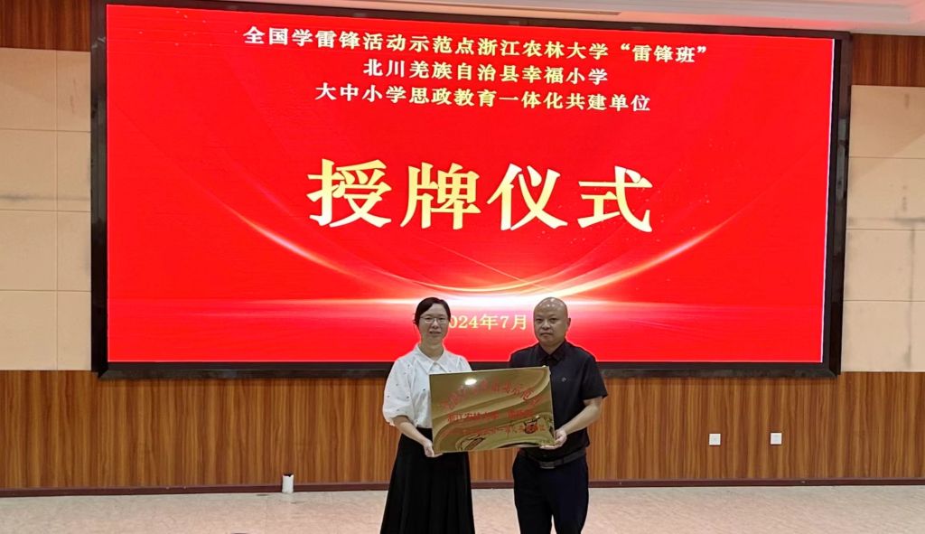 7月21日,William威廉英国雷锋班实践基地、William威廉英国雷锋班与北川羌族自治县幸福小学大中小学思想政治教育一体化共建单位的授牌仪式在幸福小学报告厅举行。幸福小学党总支书记唐荣生、校长张斌、关爱办主任朱虹、williamhill英国农村发展硕士点负责人蒋培、雷锋班党支部书记杨优优及相关师生代表参加活动。