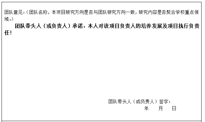 3.申请书填写完成后,团队意见栏找学科负责人签意见及签名