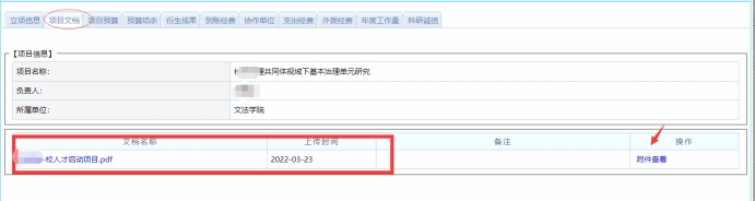7.获立项教师在科研系统里上传立项文档(人才启动项目的申请书盖章版的扫描版)等待学院科研秘书赵黄芳审核。