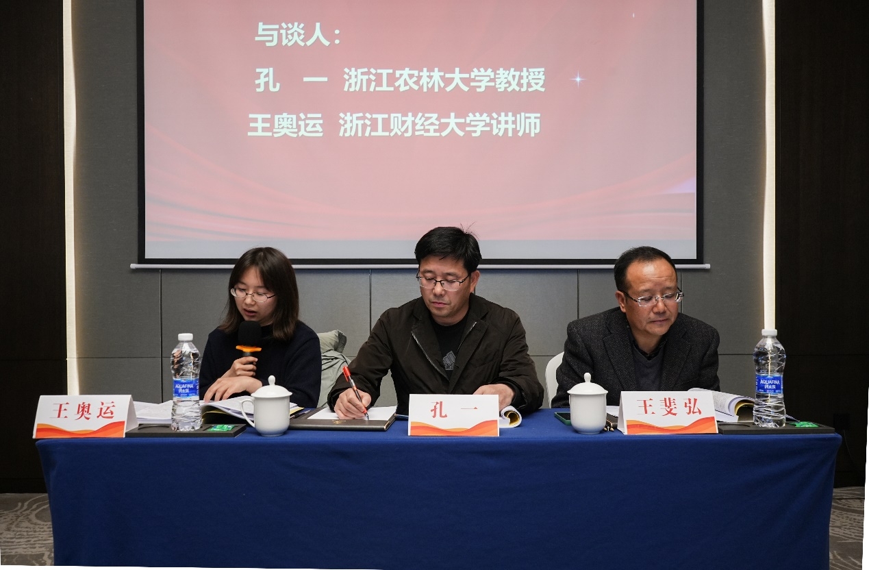 中国计量大学王斐弘教授主持第二阶段的主题研讨。宁波大学讲师张梁,浙江财经大学讲师龚金镭、马路瑶等分别发言。我院孔一教授和浙江财经大学讲师王奥运与谈点评。