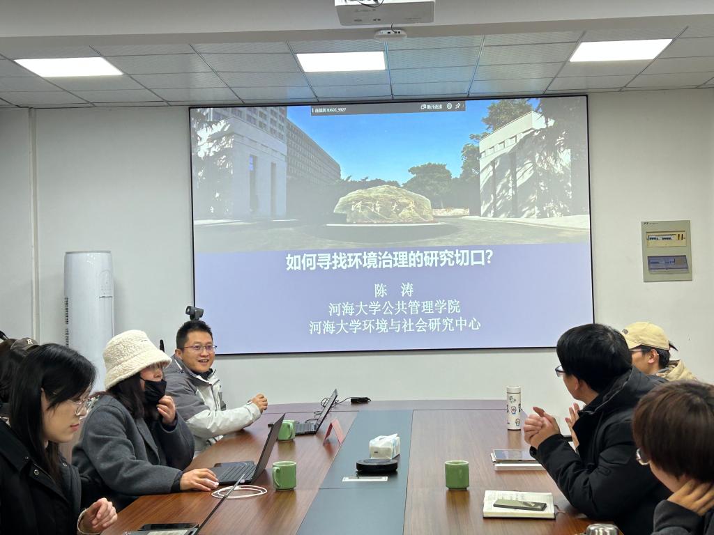 会议开始,蒋培老师隆重介绍了陈涛教授学术背景和研究领域,并对此次会议主题进行了简单介绍。随后,由陈涛教授围绕《如何寻找环境治理的研究切入点》主题作了精彩的分享。