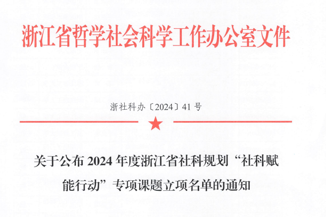 9月18日,浙江省哲学社会科学工作办公室公布2024年度浙江省社科规划“社科赋能行动”专项课题立项名单,我院姜少平博士获浙江省社科规划专项课题立项。