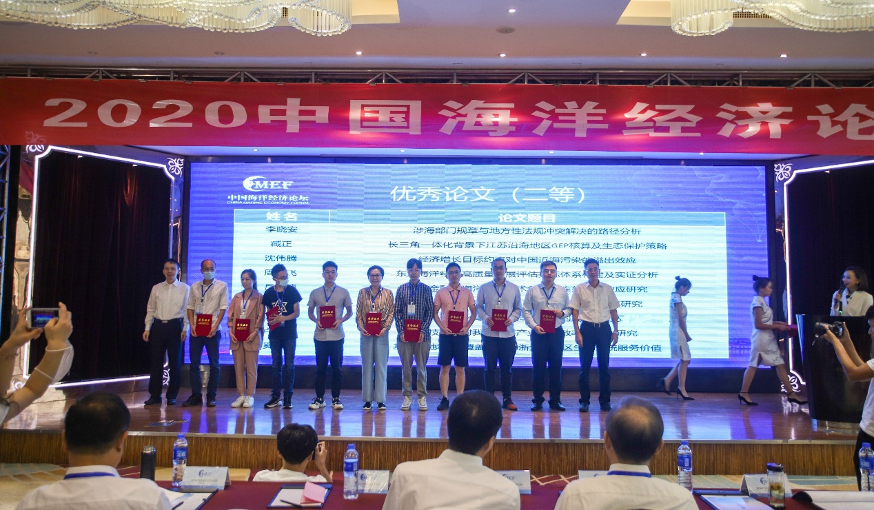 本次论坛还面向全国海洋经济研究人员进行了优秀论文评选活动,共评选出一等奖五篇,二等奖论文九篇,三等奖论文十三篇,以鼓励和支持有潜力的青年学者。我院环境法研究生沈秋豪同学(陈真亮副教授指导)撰写的学术论文荣获本次论坛优秀论文二等奖,并在“海洋文旅与法制”平行论坛中做专题发言。沈秋豪在论文和报告中建议浙江省应自觉扛起建设海洋强国、海洋治理体系与能力现代化“重要窗口”的使命担当,长三角区域应完善生态文明建设区域联动机制和陆海统筹的环境治理体系,为区域海洋生态环境治理提供可供参考的浙江经验与样本。