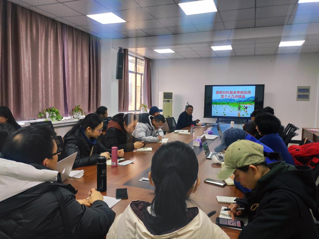 会上,鲁院长对今年国家社科基金申报的政策进行了分析和讲解,并强调布置了学院国家社科基金申报材料提交的时间节点。另外,特别作为申报人和评审专家,从申报课题的破题到申报书各部分的撰写,详细分享了个人的申报经验:1.吃透指南,精准选题;2.广泛阅读,精准破题;3.立足专业,精准论证;4.反复推敲,精准表达。